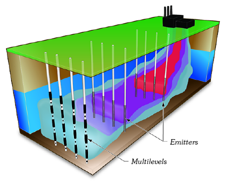 專為受污染的地下水修復而設計,通過釋放適于微生物生長所需的氧氣及其他物質(zhì),對地下水中的污染物進行生物降解;理想的甲基叔丁基醚(MTBE)、苯系物(BTEX)降解設備,氧分子釋放后立見成效的生物修復功能;放氧過程中不會產(chǎn)生泡沫損失氣體,同時可進行非生物反應、調(diào)節(jié)地下水層的pH值等