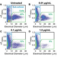 近期,美國(guó)弗吉尼亞大學(xué)的科研人員利用阻抗流式細(xì)胞儀Ampha Z32測(cè)定分析了經(jīng)吉西他濱處理的胰腺腫瘤培養(yǎng)基上清液中ABs,所得測(cè)量結(jié)果與常規(guī)方法提取出的凋亡細(xì)胞所表現(xiàn)出表型特征一致。