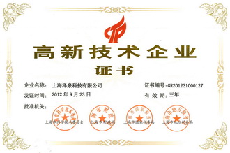2012年9月,上海澤泉科技有限公司被評選為上海市高新技術(shù)企業(yè)。