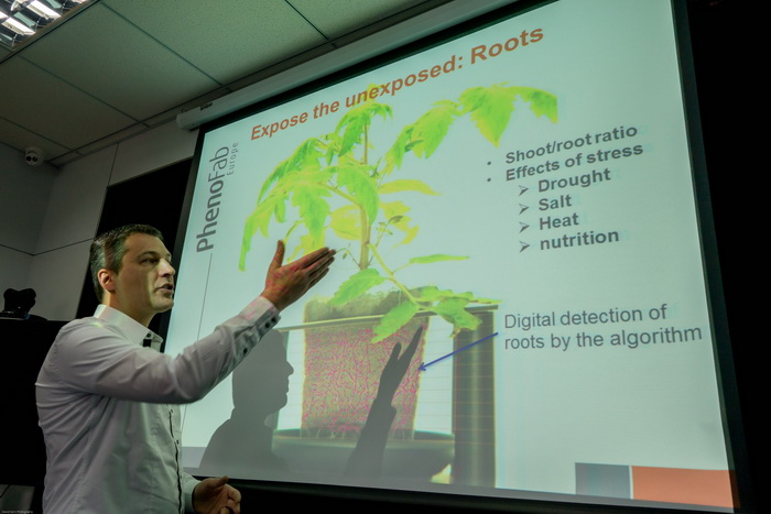 在報(bào)告中,Marco介紹了Keygene公司在植物表型研究領(lǐng)域的技術(shù)進(jìn)展,以“利用植物早期表型測(cè)定預(yù)測(cè)油菜產(chǎn)量”為例,分享了植物表型測(cè)量對(duì)于育種方向和過程的指導(dǎo)意義。隨著各類作物基因組測(cè)序完成,對(duì)于基因型研究越來越深入,而關(guān)于植物表型及其控制基因型之間的關(guān)聯(lián)的研究較少。目前,對(duì)表型的測(cè)量通常通過肉眼進(jìn)行,對(duì)于像顏色等難于正確識(shí)別的性狀,需要一個(gè)更加客觀的測(cè)量和記錄工具。