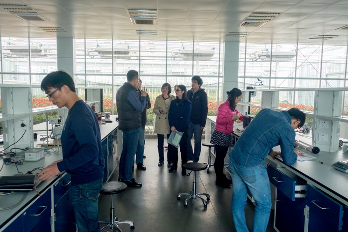 不結(jié)球白菜生長發(fā)育過程中表型變化2014年11月13日,上海市普陀區(qū)科學(xué)技術(shù)委員會鄧嵐副主任和上海張江高新技術(shù)產(chǎn)業(yè)開發(fā)區(qū)普陀園管理委員會張家驥老師一行來到位于浦東孫橋的AgriPheno平臺進(jìn)行了考察調(diào)研。上海澤泉科技股份有限公司董事長顧群先生接待了鄧嵐副主任一行。