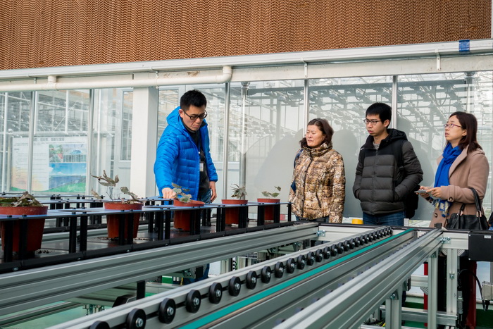 黃教授一行參觀了AgriPheno平臺的高通量植物表型平臺,仔細調研了利用AgriPheno平臺能夠取得的數(shù)據和應用,并與AgriPheno團隊做了詳細的溝通。最終,黃教授與AgriPheno平臺達成了一致意見,將盡快在蔬菜的高通量表型方面開展工作。