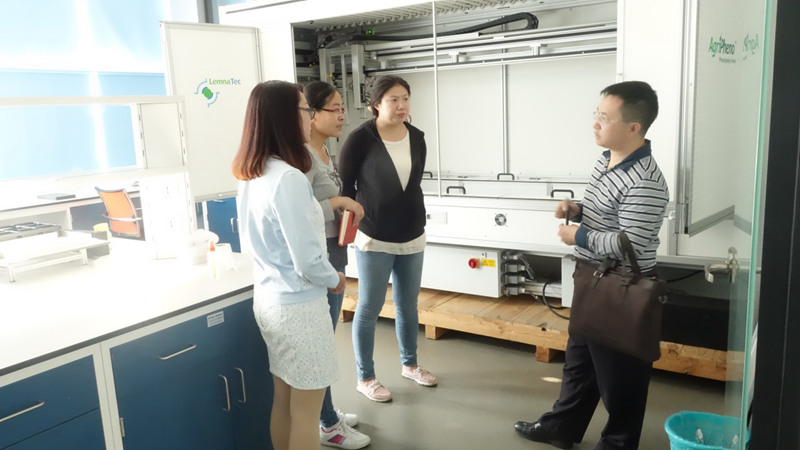 潘院長(zhǎng)先后參觀(guān)了平臺(tái)的高通量表型設(shè)備Scanlyzer 3D、Scanlyzer HTS、ScanlyzerPL和PlantEye的實(shí)際操作演示,詳細(xì)了解了各設(shè)備的特點(diǎn)和應(yīng)用領(lǐng)域。隨后參觀(guān)了植物生理生態(tài)測(cè)量平臺(tái)和植物培養(yǎng)平臺(tái)。潘院長(zhǎng)認(rèn)為通過(guò)平臺(tái)的整個(gè)配置體系能很好了解作物表型與其產(chǎn)量、生理狀態(tài)之間的相互聯(lián)系,以及不同環(huán)境條件對(duì)作物生長(zhǎng)狀況、產(chǎn)量等的影響,具有很高的學(xué)習(xí)價(jià)值。同時(shí)歡迎平臺(tái)人員到貴州煙草研究院進(jìn)行考察,加強(qiáng)相互間的學(xué)習(xí)與交流。