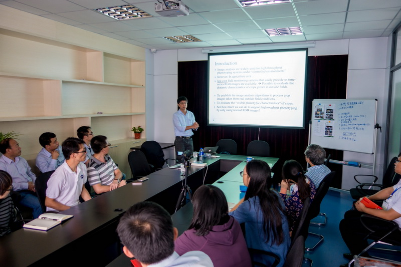 不結(jié)球白菜生長發(fā)育過程中表型變化2014年9月19日,第4次AgriPheno論壇按計(jì)劃在上海浦東孫橋現(xiàn)代農(nóng)業(yè)園區(qū)AgriPheno平臺(tái)進(jìn)行。來自東京大學(xué)的郭威博士和Kyosuke Yamamoto博士分別以“Development of machine vision applications for low cost field based high throughput phenotyping systems”和“On Plant Detection of Intact Tomato Fruits Using Image Analysis and Machine Learning Methods”為題做了報(bào)告。來自AgriPheno平臺(tái)、上海交通大學(xué)、上海農(nóng)科院、美國Spectrum公司、新加坡Manyara公司等單位的20多人參加了本次論壇。