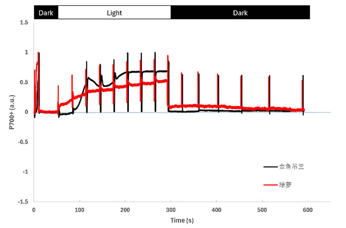 1. 葉綠素?zé)晒夂?/span>P700+誘導(dǎo)動(dòng)力學(xué)