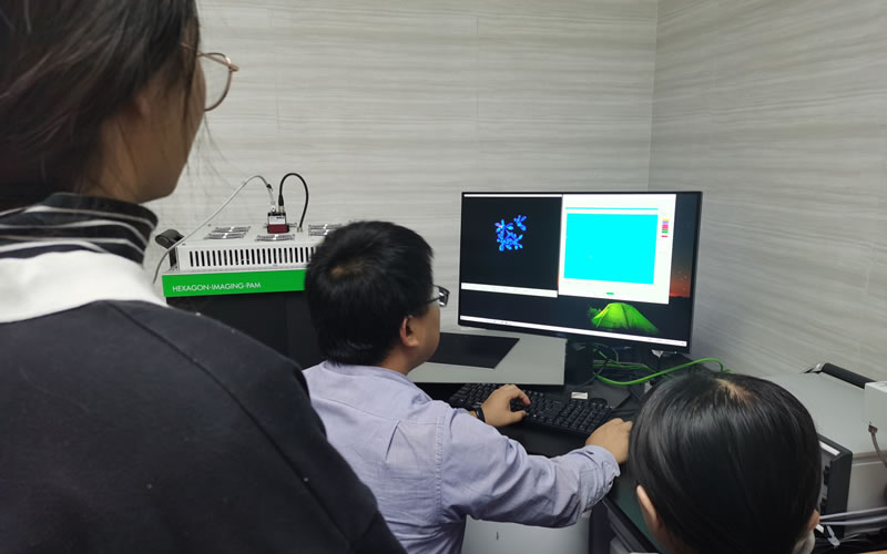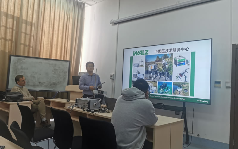 Gert Schansker博士詳細介紹了德國WALZ公司推出的新產(chǎn)品,包括Porometer氣孔計、Leaf State Analyzer LSA-2050、MICRO-PAM、MULTI-COLOR-PAM-II、HEXAGON-IMAGING-PAM等。Porometer氣孔計是超便攜調(diào)制葉綠素?zé)晒鈨xMINI-PAM-II的最新配套附件,通過它可以實現(xiàn)葉片氣孔導(dǎo)度和葉綠素?zé)晒獾耐綔y量,可以用于快速評估PSII光能轉(zhuǎn)換效率和氣孔開放程度;Leaf State Analyzer LSA-2050,基于葉片表皮屏蔽UV-A/B、葉綠素含量差異,F(xiàn)v/Fm差異等參數(shù)進行植物突變體篩選的應(yīng)用;緊湊型多通道長期監(jiān)測熒光儀MICRO-PAM,可以不間斷收集植物葉綠素?zé)晒鈹?shù)據(jù),特別適用于研究植物對自然環(huán)境變化和受控條件下的響應(yīng)研究;多激發(fā)波長葉綠素?zé)晒鈨xMULTI-COLOR-PAM-II,可以實現(xiàn)亞μs分辨率超快測量探測放氧復(fù)合體(OEC)狀態(tài);HEXAGON-IMAGING-PAM是大型蜂巢矩陣葉綠素?zé)晒獬上裣到y(tǒng),憑借高精度的脈沖振幅調(diào)制(PAM)技術(shù),可以對20×24cm的區(qū)域進行成像,在光合作用研究、植物病理學(xué)、植物脅迫生理學(xué)、遺傳育種、突變株篩選、微藻毒理學(xué)等領(lǐng)域應(yīng)用廣泛。活動期間,我們還走進實驗室,與一線科研人員探討了研究中遇到的具體問題和解決思路,Gert Schansker博士提出了非常有價值的改進建議,令用戶深受啟發(fā),困擾很久的疑難問題得到解決。澤泉科技技術(shù)工程師對設(shè)備使用老師和同學(xué)進行了操作和應(yīng)用的專業(yè)指導(dǎo),受到一致好評。澤泉科技視頻號對本次活動的線上部分進行了全程直播,吸引了1000多人進入直播間觀看報告。各場次的直播回放已經(jīng)生成,歡迎大家關(guān)注澤泉科技視頻號觀看。本次活動,得到了相關(guān)單位和用戶的大力支持,有不少外地的用戶也專程趕來參加,我們在此表示誠摯的感謝!我們來回顧一下各地活動現(xiàn)場的精彩瞬間吧!
