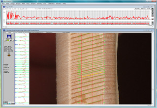 大型木材樣本可在不同部位多次分別成像;特殊的樹芯定位器用以放置柱狀樣本;兩種自動測定年輪的方法分別適用于不同的樹木類型;人工輔助的圖像識別校正和遺漏像素添加功能;可利用木材薄片的 X 光膠片掃描進(jìn)行木材密度測定( 密度版)。此外,WinDENDRO 可自動設(shè)置裂縫與年輪角度的切線,以保證測量的精準(zhǔn)性;另外,附加 XLSTEM 可進(jìn)行植物的標(biāo)準(zhǔn)生長分析,如莖干平均半徑、直徑以及總體截面積;樹木高度、體積、樹齡等。對于所分析的年輪圖像可同時顯示如下參數(shù):年輪寬度、早材/夏材寬度、年輪最大/最小密度/平均密度、早材/夏材平均密度(高級密度版)等。