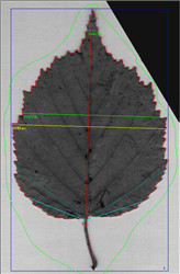 葉子測量參數(shù):葉面積(單個和總的),葉子穿孔面積(單個和總的),葉子長度,葉周長,葉最大寬度、平均寬度,縱橫比,形狀因子。